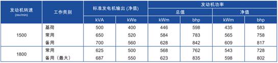 功率:于1500 rev/min時(shí),609kWm