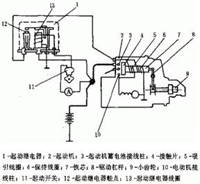 如果齒輪與飛輪齒端相對,不能馬上嚙合,此時(shí)彈簧壓縮,當齒輪轉過(guò)一個(gè)角度后,齒輪與飛輪迅速?lài)Ш?。當鐵芯移動(dòng)到使短路開(kāi)關(guān)閉合的位置時(shí),短路線(xiàn)路接通,吸引線(xiàn)圈被短路,失去作用,保持線(xiàn)圈所產(chǎn)生的磁力足以維持鐵芯處于開(kāi)關(guān)吸合的位置。
