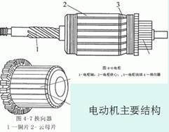 3.電刷和電刷架:電刷與電刷架的作用是將電流引入電樞,使電樞產(chǎn)生連續轉動(dòng)。