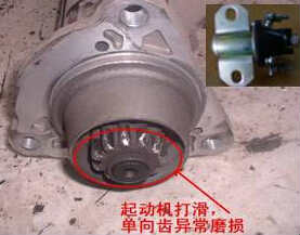 造成此故障的現象:起動(dòng)機空轉,發(fā)動(dòng)機無(wú)法啟動(dòng) 造成此故障的原因分析:起動(dòng)機繼電器損壞、單向齒磨損或飛輪齒環(huán)磨損 此故障的維修解決方法:更換相關(guān)損壞件