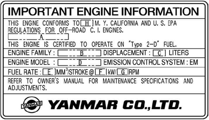 洋馬發(fā)動(dòng)機EPA以及ARB環(huán)保貼牌