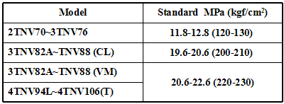 極限 :新噴油嘴需要磨合 按比下表中標準高 5 Bar調整: