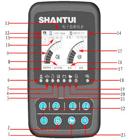 軟功能鍵,操作對應監控儀表液晶顯示區的功能。