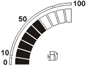 監控儀表工作顯示界面直觀(guān)顯示發(fā)動(dòng)機燃油油位,如圖所示。顯示范圍為0~100%十段,可根據段位監控燃油油位。如要查看具體精確數值,請參閱運行參數。