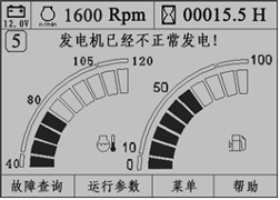 啟動(dòng)發(fā)動(dòng)機后,如果監控儀表未檢測到充電信號,提示“發(fā)電機已經(jīng)不正常發(fā)電!”文字報警,監控儀表面板上充電報警指示燈閃爍,同時(shí)蜂鳴器鳴叫,如圖所示。