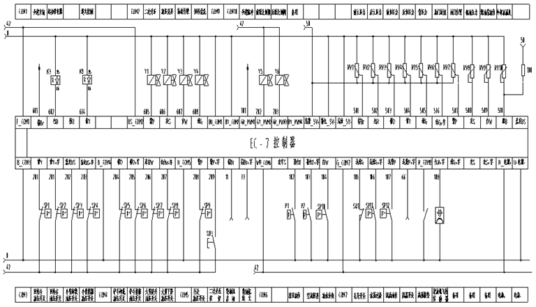 電控系統:一臺EPS控制器或者一臺EC-7控制器,5個(gè)壓力傳感器、9個(gè)壓力開(kāi)關(guān)、2個(gè)比例閥、4個(gè)電磁閥、1個(gè)步進(jìn)電機驅動(dòng)器、1個(gè)油門(mén)旋鈕傳感器、1個(gè)油門(mén)位置傳感器、1個(gè)水溫傳感器、1個(gè)柴油油位傳感器、1個(gè)機油壓力傳感器、1個(gè)發(fā)動(dòng)機轉速傳感器(脈沖量)。其中EC-7控制器包含一塊EC-7綜合轉換板,實(shí)現通信規約轉換、發(fā)動(dòng)機頻率匹配等功能。