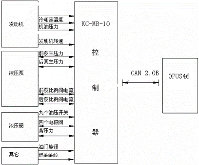 本系統由KC-MB-10控制器、OPUS46顯示、油門(mén)控制單元以及一些必要的模擬量、開(kāi)關(guān)量傳感器、模式電磁閥組、開(kāi)關(guān)閥等組成。通過(guò)對發(fā)動(dòng)機和液壓泵系統進(jìn)行綜合控制,使二者達到最佳匹配,以達到明顯的節能效果。