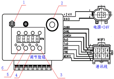 該裝置主要實(shí)現四種工作模式的選擇,自動(dòng)怠速功能、柴油機轉速控制等功能。