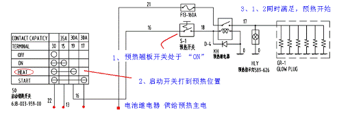 6.發(fā)動(dòng)機預熱控制為人工手動(dòng)控制。注意檢查右扶手箱上預熱允許翹板開(kāi)關(guān)是否正常。若損壞,必須立即更換,否則每次啟動(dòng)過(guò)程均會(huì )預熱。