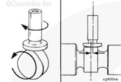 康明斯ISF3.8 CM2220 AN 和 IAN 發(fā)動(dòng)機挺桿上有一個(gè)與凸輪軸氣門(mén)凸輪保持常接觸的蘑菇形狀,常稱(chēng)為滑動(dòng)挺桿。隨著(zhù)挺桿的升起,挺桿上與凸輪軸氣門(mén)凸輪接觸、偏離凸輪軸氣門(mén)凸輪中心線(xiàn)的表面凸起形狀使挺桿轉動(dòng)。由于挺桿的外形像蘑菇,因此拆下凸輪軸后才能拆下挺桿。再拆卸油底殼或使用適當的維修工具來(lái)靠近挺桿。