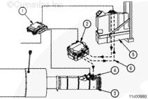 SCR 催化器出口處的氮氧化物傳感器 (4) 將監測排氣系統的氮氧化物排放量,并將信息送回 ECM。