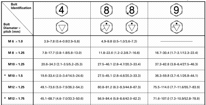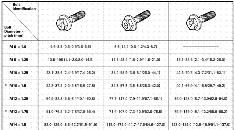 標準螺栓:N·m(kgf · m/Ib · ft)