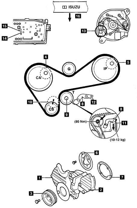 注意:從發(fā)動(dòng)機的前部應該可以讀到皮帶上的字母‘ISUZU’(如圖16所示)。