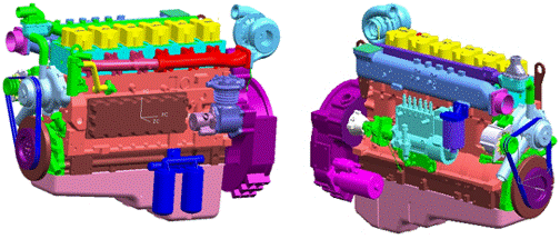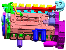 整體梯形結構曲軸箱,剛度好,有效減少曲軸箱變形,降低噪聲。 采用每缸一蓋結構,制造性好,廢品率低,維修性好。 內冷油道活塞、新型活塞環(huán)和缸套滿(mǎn)足了發(fā)動(dòng)機性能和可靠性的要求,有效降低機油耗。 油、氣獨立回流和旋風(fēng)式油氣分離技術(shù)使油、氣分離徹底。 后置齒輪室,使后端取力方便,并且使發(fā)動(dòng)機外形更窄,可以適配各種重型車(chē)底盤(pán)。參考WD615和五十鈴6SD1TC兩種柴油機的結構進(jìn)行設計。WD615柴油機為干式缸套結構,缸徑×行程為126×130,缸心距為150,齒輪室前置; 6SD1TC柴油機也是干式缸套結構,缸徑×行程為120×145,缸心距為136,齒輪室后置。YC6D10在WD615的基礎上將干式缸套改為濕式缸套,缸徑設計為120,行程為145,缸心距為150,活塞連桿結構參考6SD1TC進(jìn)行設計;齒輪室采用后置結構以提高配套適應性;缸蓋采用一缸一蓋結構。