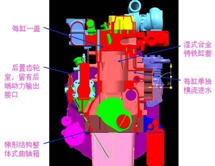 冷卻水采用每缸單獨進(jìn)水的橫流結構,保證各缸冷卻均勻 。