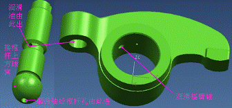 潤滑油從推桿上到調整螺釘,再經(jīng)過(guò)調整螺釘上到搖臂調整螺釘孔,然后進(jìn)入搖臂的搖臂軸孔,潤滑搖臂軸,構思巧妙,解決缸蓋不好上油的問(wèn)題。