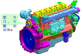 ¢ 配套適應性高:采用后置齒輪室,使發(fā)動(dòng)機更窄,可以適合國內各種重型車(chē)底盤(pán)。