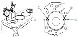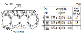 1.選擇適當厚度的缸蓋墊,活塞頭部突出量最大與最小之差不能超過(guò)如下所示,并根據下表確定缸墊厚度