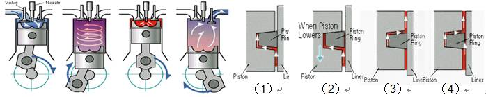 往復活塞式發(fā)動(dòng)機運轉時(shí)活塞環(huán)會(huì )出現“泵油”現象,雖然現階段的發(fā)動(dòng)機活塞環(huán)采用的“梯形環(huán)”和“扭曲環(huán)”可減少泵油現象,但不可避免的仍然會(huì )有少量的機油進(jìn)入到燃燒室內參與燃燒。