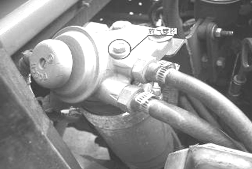 排放燃油系統中的空氣時(shí),應該先旋轉燃油濾清器頂部的放氣螺塞,將其松開(kāi),按壓手油泵,直到從放氣孔中流出無(wú)空氣的燃油。緊固放氣螺塞。
