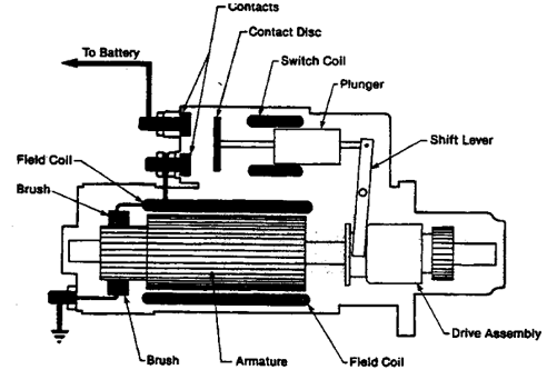 l          外殼和磁場(chǎng)線(xiàn)圈、轉子和換向環(huán)、馬達驅動(dòng)機構、電磁接觸器和切換桿、碳刷