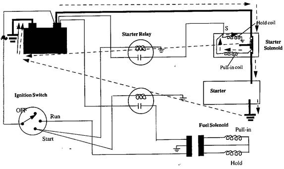 l          當起動(dòng)開(kāi)關(guān)閉合時(shí),電路流經(jīng)電磁閥吸入線(xiàn)圈和保持線(xiàn)圈、磁場(chǎng)線(xiàn)圈和轉子線(xiàn)圈。