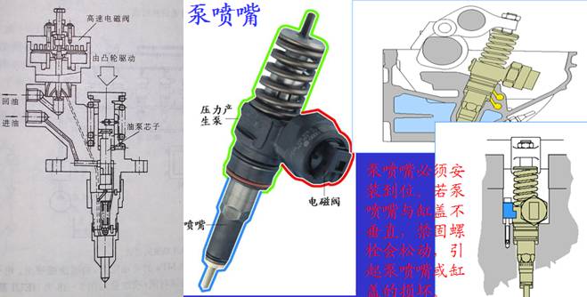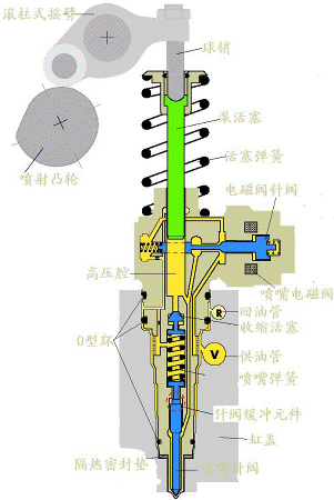 ECU根據柴油機轉速,加速踏板位置水溫增壓壓力等傳感器信號控制噴油泵—噴油器上的電磁閥實(shí)現對提前角及噴油量控制。