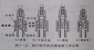 柱塞套筒下方設有一個(gè)控制套筒通過(guò)調節桿的上下移動(dòng)來(lái)控制預行程量的變化二是進(jìn)油口設置在柱塞上燃油的噴射過(guò)程與普通噴油泵不同