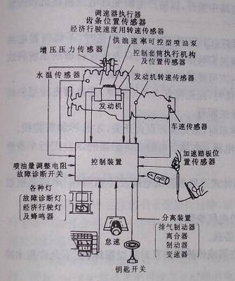 系統功能:預行程控制(供油速率、噴油提前角)噴油量控制,故障自診斷經(jīng)濟行程監控,自動(dòng)控制車(chē)輛經(jīng)濟速度行駛等。
