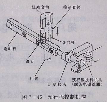 控制筒的上下移動(dòng)是由預行程機機構(電磁線(xiàn)圈)通過(guò)U型接頭轉動(dòng)定時(shí)桿上銷(xiāo)釘撥動(dòng)控制套筒上下移動(dòng)來(lái)改變預行程的,并根據預行程位置傳感器反饋信號進(jìn)行修正