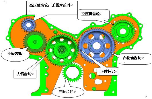 電控柴油發(fā)動(dòng)機齒輪間隙及記號對正: