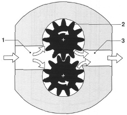 1-吸油端 2-驅動(dòng)齒輪 3-壓力端