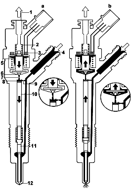 噴油器可以被拆分為一系列功能部件:孔式噴油嘴,液壓伺服系統和電磁閥。