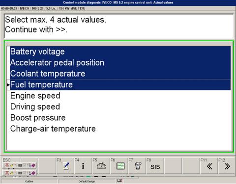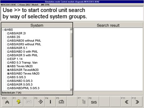 如果名稱(chēng)前面的框有一灰色背景,在此組列出的系統在自動(dòng)組搜索不能發(fā)現。 (通過(guò)點(diǎn)擊加符號或F7可以獲得清單)。如果安裝在車(chē)上的控制單元在組搜索時(shí)不能被找到,相關(guān)的控制單元必須在清單中手動(dòng)選擇。通過(guò)F7, 你可以打開(kāi)或關(guān)閉自動(dòng)選擇。