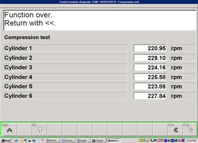 缸壓測試時(shí),ECU停止對發(fā)動(dòng)機的噴油。起動(dòng)機帶動(dòng)發(fā)動(dòng)機運轉。電腦同時(shí)測量各缸壓縮,膨脹階段的轉速。