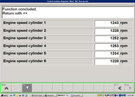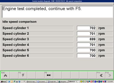 怠速比較測試時(shí),KTS提供特定發(fā)動(dòng)機轉速(如700/RPM),同時(shí)ECU取消發(fā)動(dòng)機怠速控制功能,讀取各缸轉速。