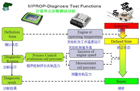 更換有故障的計量單元而不是高壓泵總成。在維修站可通過(guò)軌壓實(shí)驗檢測計量單元的好壞??赏ㄟ^(guò)計量單元在不同范圍所對應的壓力變化檢測出其它故障。