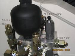 將測試儀壓力輸入口1線(xiàn)接到事故操作壓力測點(diǎn)上,把先導閥塊上的事故手柄順時(shí)針打到垂直位置,把發(fā)動(dòng)機轉速調到最高,測到的事故壓力是14 bar。測完后把事故手柄逆時(shí)針打到水平位置。
