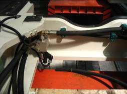 用工裝尺子量下邊履帶軌與下車(chē)架護輪架之間的距離,若距離大,將潤滑油槍放在沖注閥上注入潤滑劑直到履帶與護輪架之間的距離達到工裝尺子的長(cháng)度。