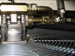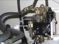 應為390 bar,否則調節工作閥塊動(dòng)臂調節螺釘 ,如下圖里側螺釘。