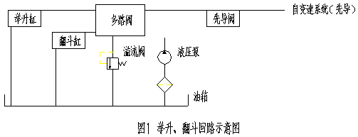 結合舉升、翻斗回路示意圖,分析舉升、翻斗無(wú)力的原因如下: