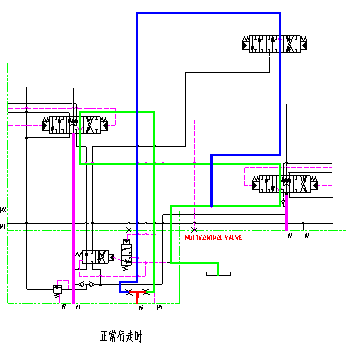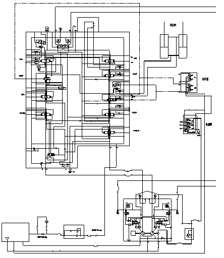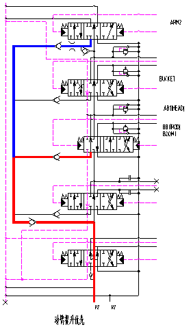 動(dòng)臂提升合流BOOM2閥把泵1的流量引到動(dòng)臂大腔,實(shí)現合流。