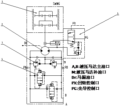 1 回轉減速機 2回轉馬達 3回轉制動(dòng)溢流閥