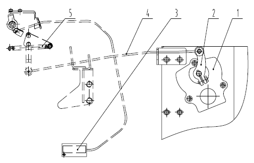 1- 步進(jìn)電機 2-曲柄總成 3-熄火裝置 4-連桿 5-油門(mén)擺桿