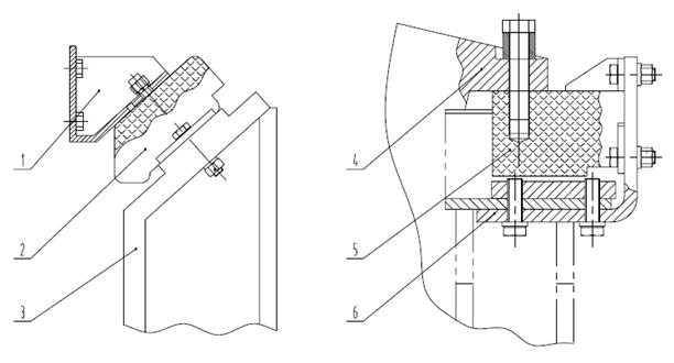 1、4-發(fā)動(dòng)機支腿 2、5-減震墊 3、6-固定座