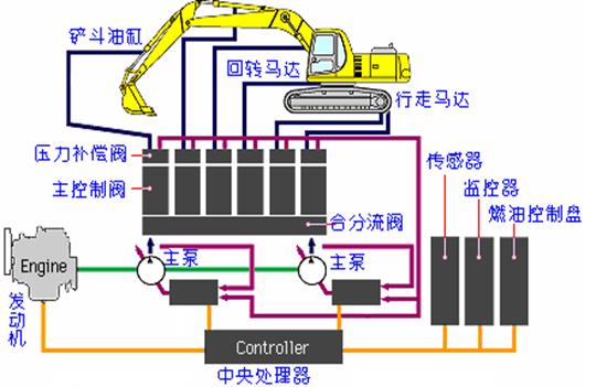單斗液壓挖掘機的動(dòng)力裝置,多采用直立式多缸、水冷、一小時(shí)功率標定的柴油機。