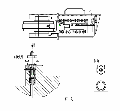 每條履帶都設有張緊裝置,以調整履帶的張緊度,減少履帶的振動(dòng)噪聲、摩擦、磨損及功率損失,見(jiàn)圖3-17。目前單斗液壓挖掘機都采用液壓張緊結構。其液壓缸置于緩沖彈簧內部,減小了外形尺寸。