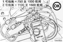 注: 測量車(chē)速傳感器線(xiàn)圈的電阻值時(shí),使用 2 個(gè)陰性測試導線(xiàn)。這樣就可以輕微地彎曲傳感器的電氣導線(xiàn),以便檢查絕緣層下面的導線(xiàn)股是否損壞或部分斷裂。
