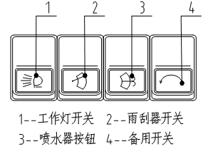按下工作燈開(kāi)關(guān)右側,則動(dòng)臂左、右工作燈與平臺工作燈亮,按下開(kāi)關(guān)左側以斷開(kāi)工作燈。