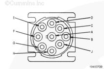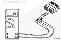 測量康明斯qsb5.9發(fā)動(dòng)機 SAE J1939 數據通信接口(屏蔽)觸針(如果可用)與接頭上的所有其他觸針之間的電阻,每次測量一個(gè)觸針。萬(wàn)用表必須顯示開(kāi)路(100K 歐姆或更大)。